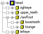 The Actor class system looks for specifically named objects the which are then handed to the Facial animation systems to control. These are head, righteye, lefteye, JawRoot, and tounge. The JawRoot should be parented to the head and the tongue to the jaw. Other wise rotations will not be properly hierarchal.